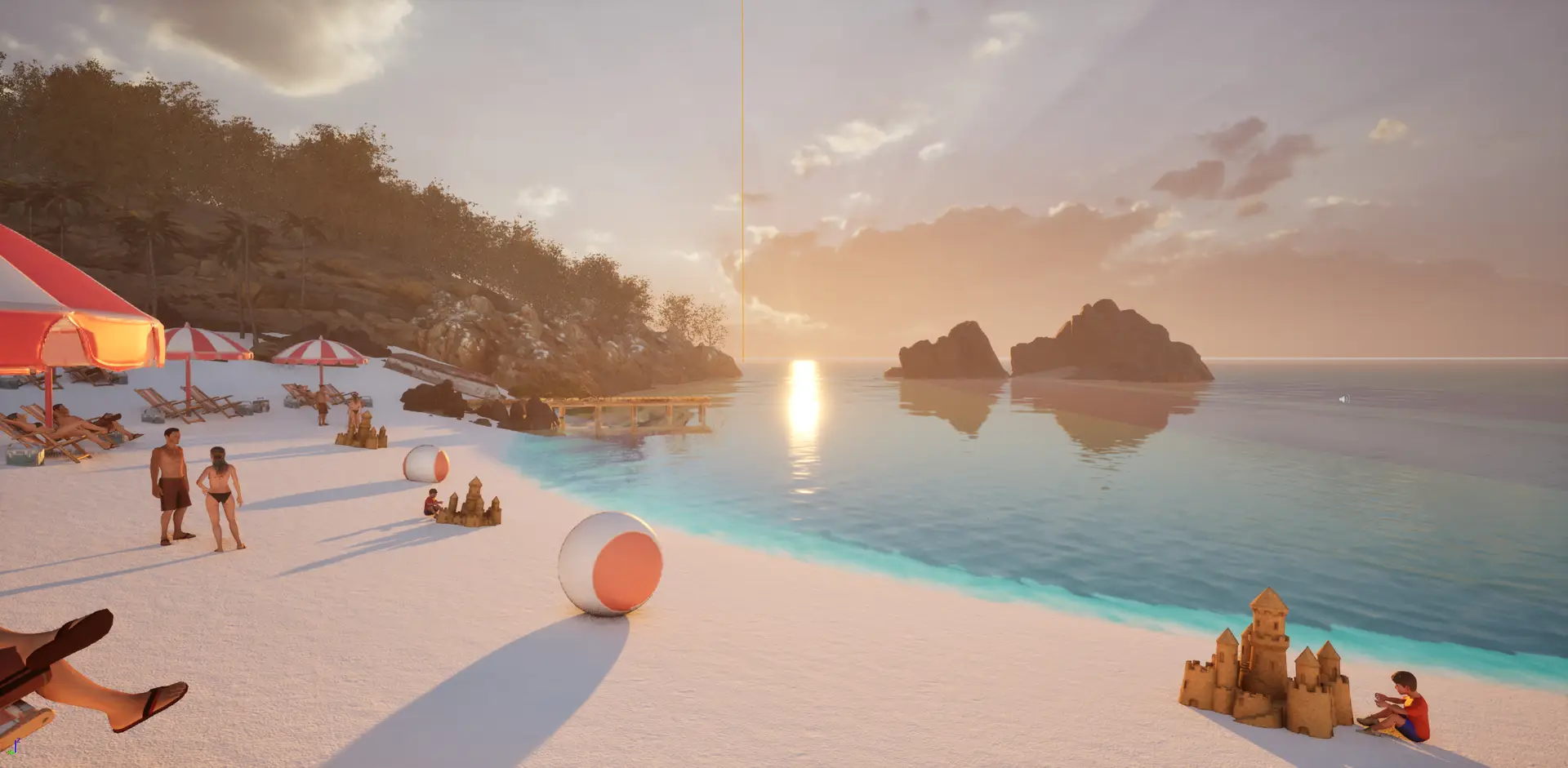 - Interactive Elements – Story-driven mysterious artifacts scattered throughout beach
