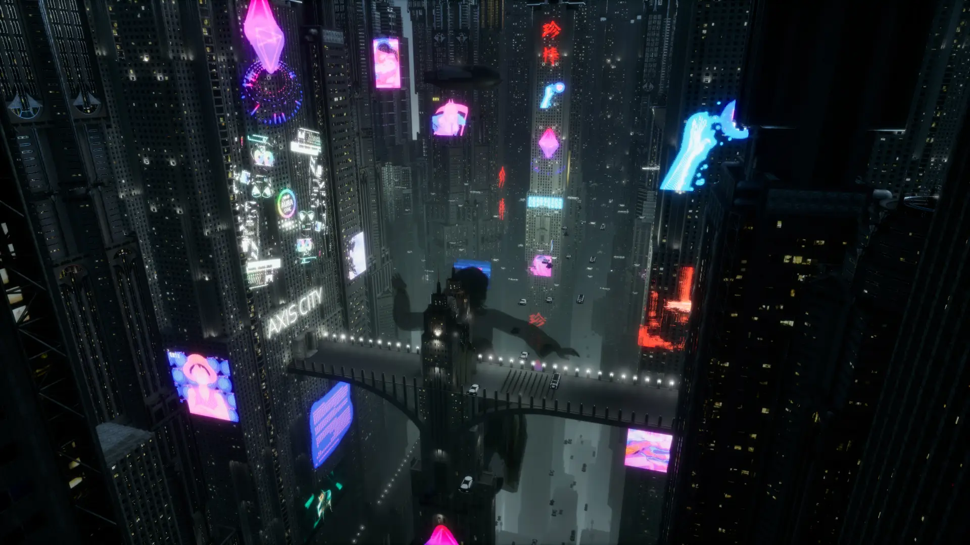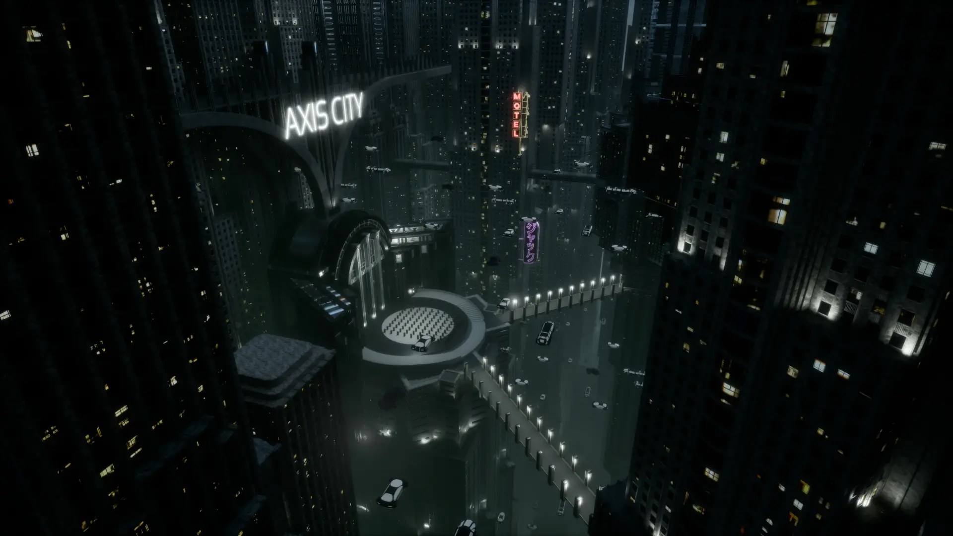 - Art Direction: Art Deco and industrial fusion architecture with dynamic billboard lighting