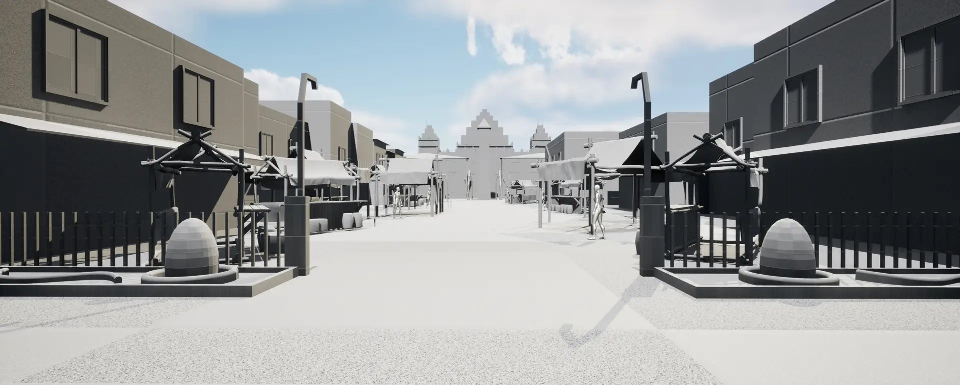 We create early-stage greybox levels to test scale, space usage, gameplay beats, and world logic.